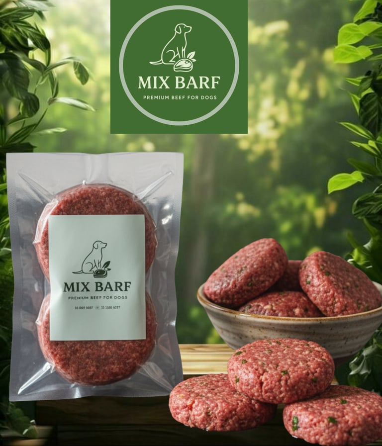 Nuestra carne MixBARF está elaborada siguiendo el modelo Biologically Appropriate Raw Food (BARF), un sistema de alimentación natural que imita lo que los perros comerían en la naturaleza: carne, vísceras, huesos carnosos, frutas y vegetales.